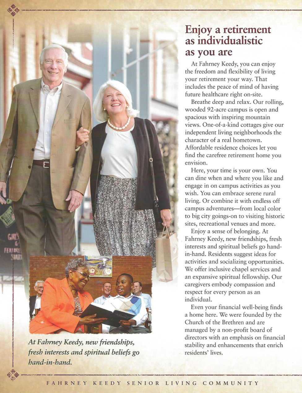 On September 22, 2015 Jim & Diane went to Boonsboro, Maryland for an advertising shoot for the Fahrney Keedy Home & Village. Karen Watts was my wife for the day. We also met Tom and Melissa Jones for dinner after the shoot. |